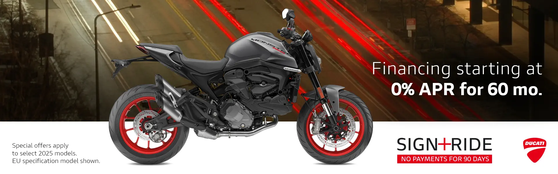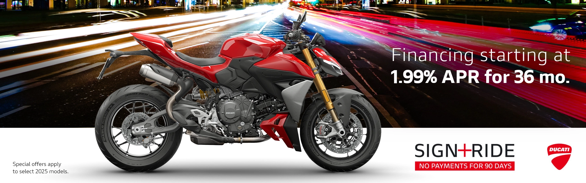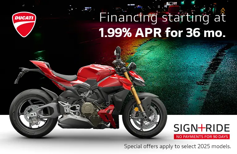 As an authorized Ducati motorcycle dealer, we bring the Italian excellence and passion for performance to Orange Park, FL. Ducati motorcycles are renowned for their breathtaking design, cutting-edge technology, and exhilarating performance. From the sporty and agile Ducati Panigale to the versatile and adventurous Multistrada, our showroom showcases a wide range of Ducati models to satisfy even the most discerning riders.