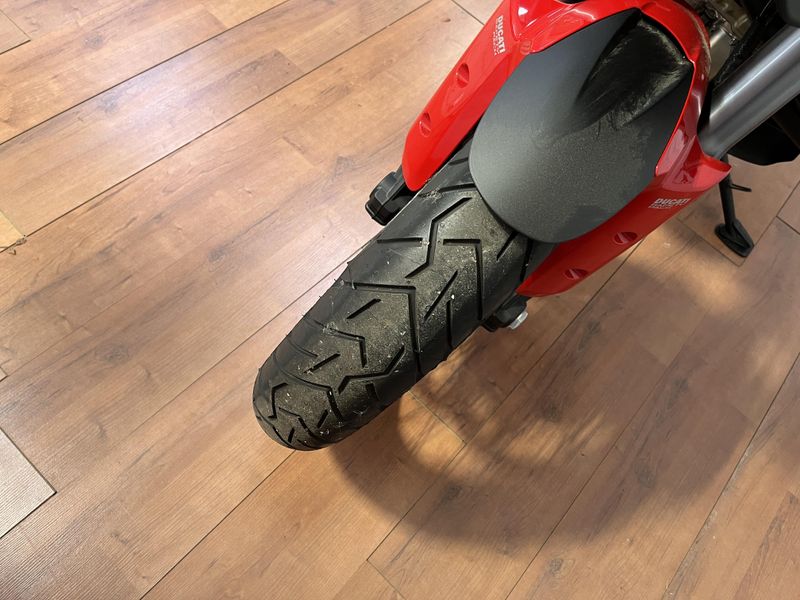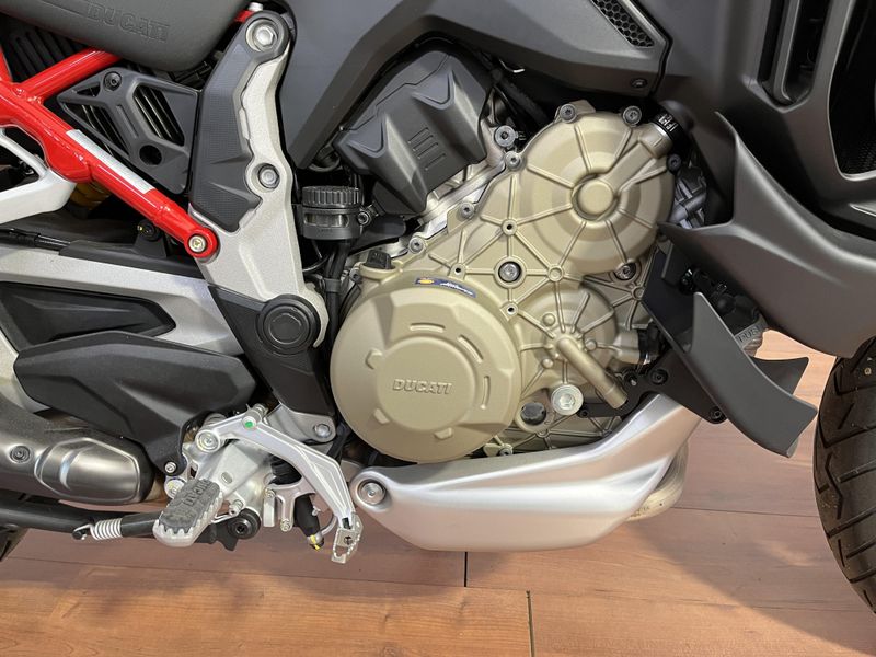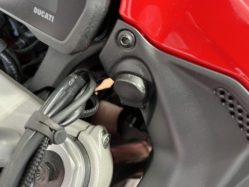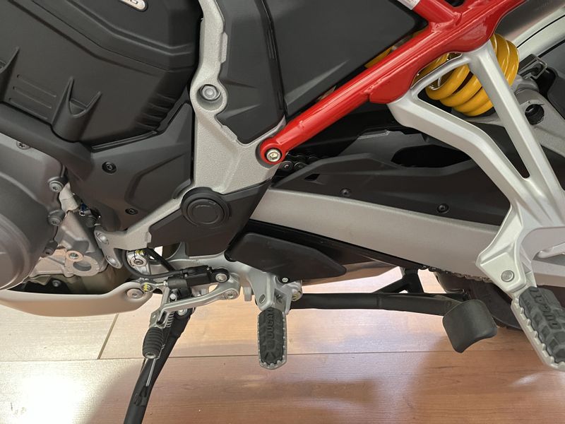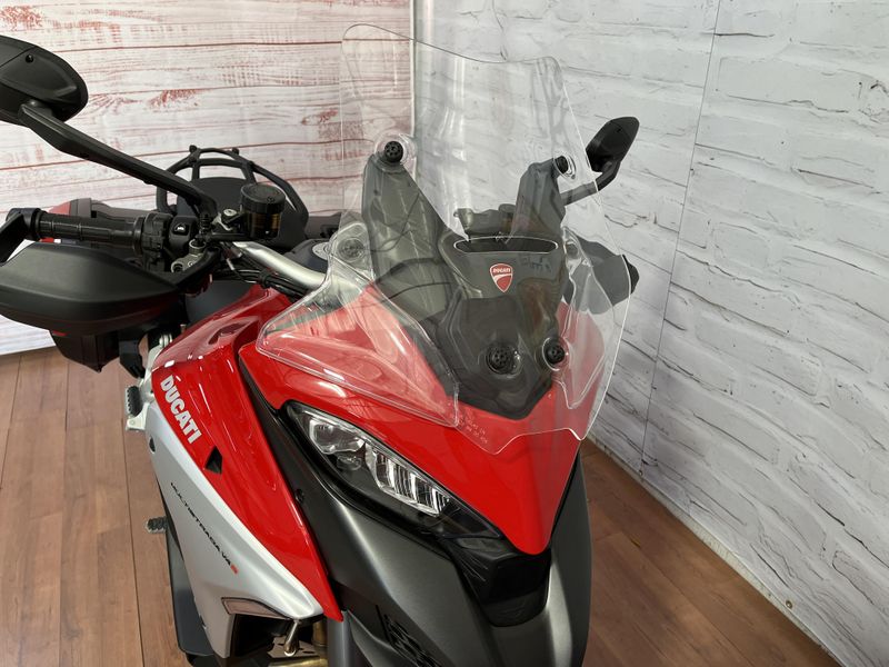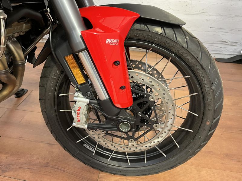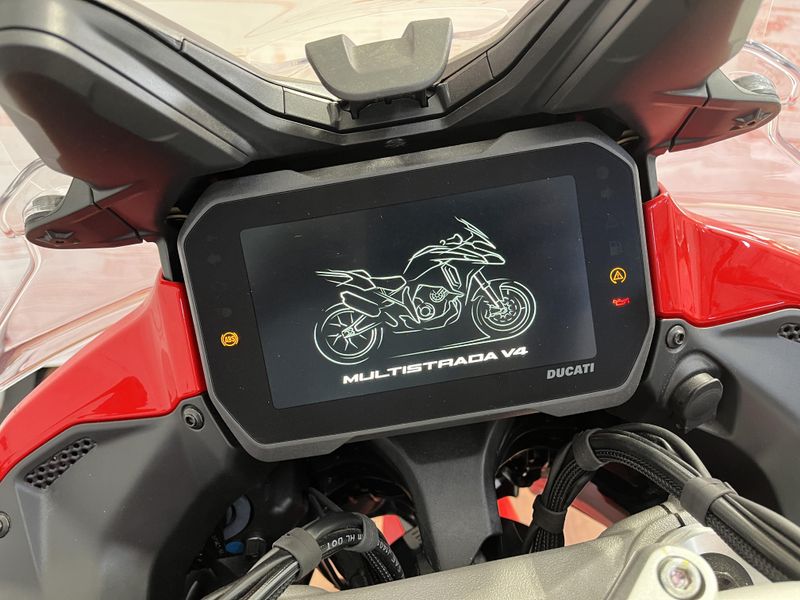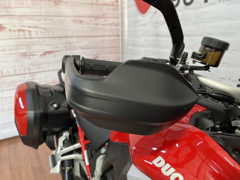 • Standard Equipment: Ducati Skyhook Suspension, Minimum preload, Ducati Quick Shift, Cruise control, Hands-free, Backlit handlebar switches, 6.5" TFT colour display with Ducati Connect and full-map navigation system, Full LED headlight, Tire pressure monitoring system (TPMS), Hands-free fuel tank cap, Auxiliary LED lights, Heated rider seat, Heated passenger seat, Heated handgrips, Central stand, Plastic side panniers