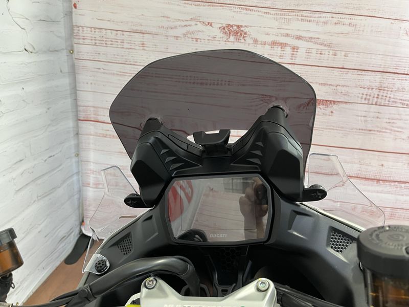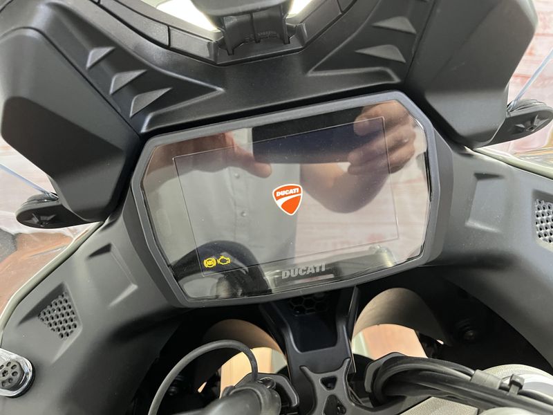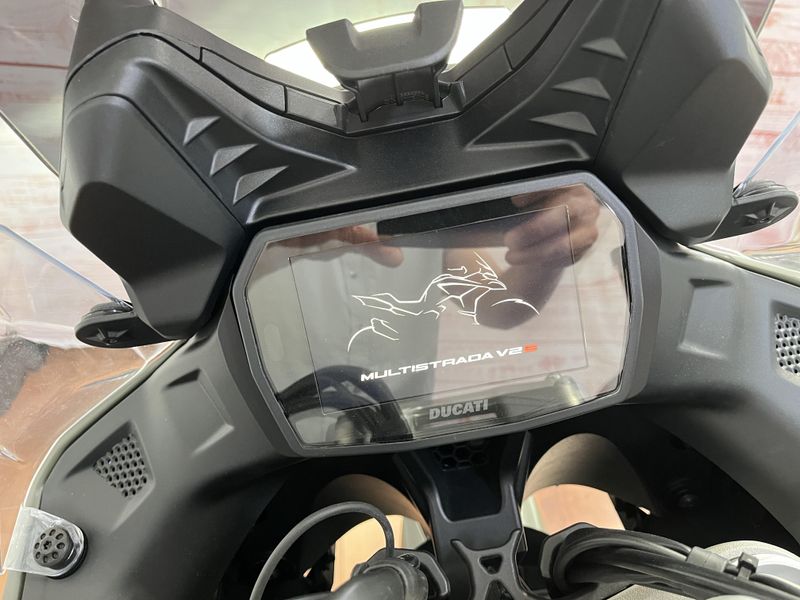 The new Multistrada V2 is a completely new project, conceived to combine performance, touring capability and ease of use. With integrated elements such as the indicators and air deflectors, the bike boasts a clean, functional look. The new aluminum monocoque frame and 19” front wheel transmit agility and lightness, without compromizing on comfort.