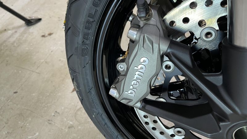 • Front Brake: 2 x Ø 320 mm semi-floating discs, radially mounted Brembo M4.32 monobloc 4-piston calipers, radial master cylinder, Cornering ABS