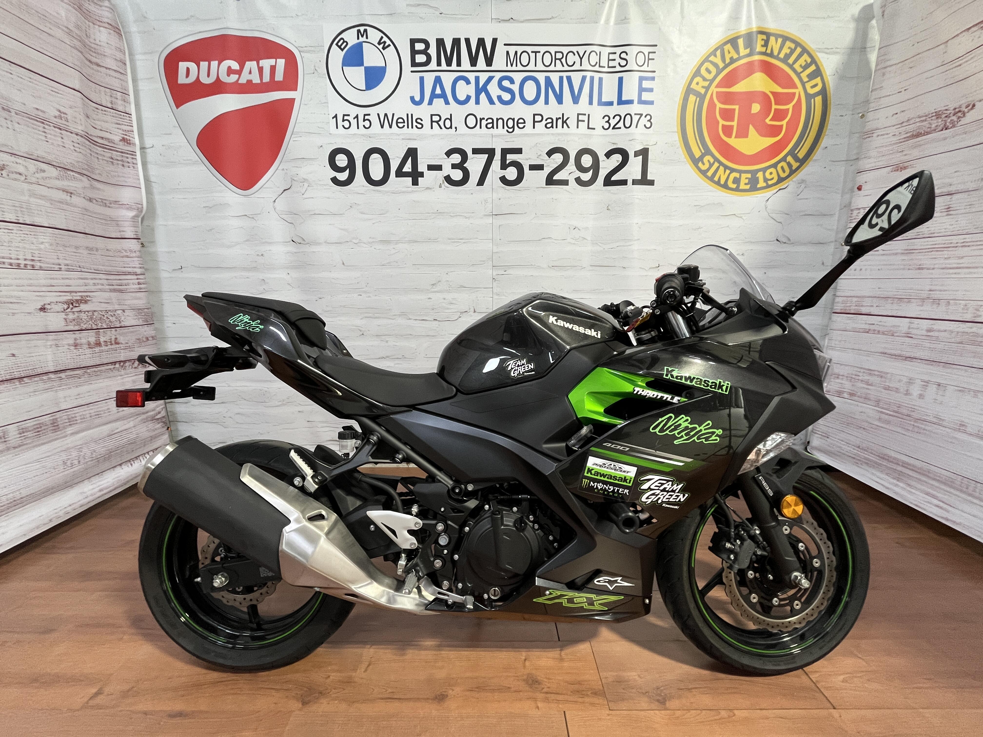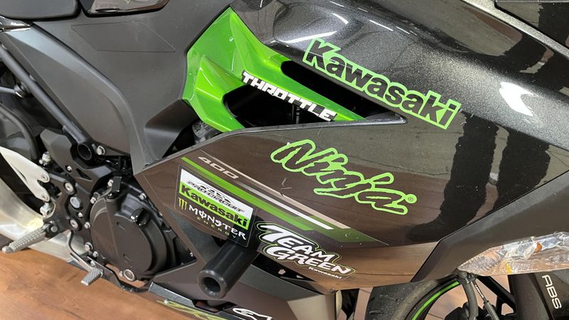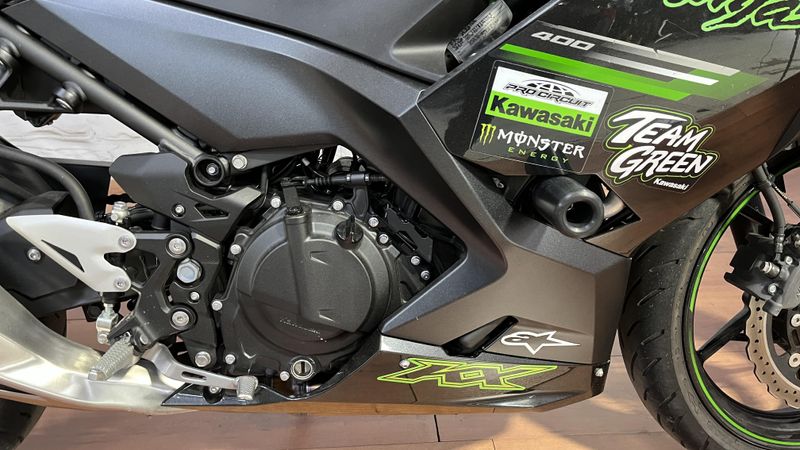 The Ninja® 400 sportbike offers the largest displacement in category at 399cc with the sophistication of twin-cylinder power. Approachable power, superb ergonomics and class-leading performance offer a smooth, manageable ride that's ideal for new riders while also alluring experienced riders. A low seat height and aggressive styling with LED headlights make the Ninja 400 the ideal choice for riders looking to enter the sport-riding scene.